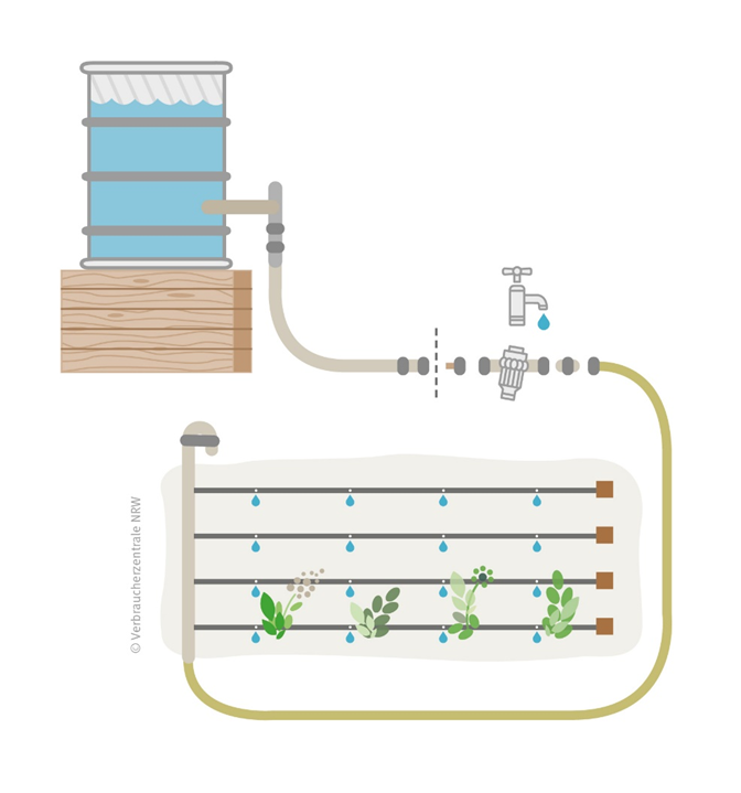 Noch besser: Nutzen Sie ein Tröpfchensystem. Es bringt Wasser direkt zur Pflanze, spart Zeit und lässt sich automatisieren – z. B. mit einer Zeitschaltuhr oder einem Feuchtesensor. So sparen Sie Wasser und fördern eine nachhaltige Gartenpflege.